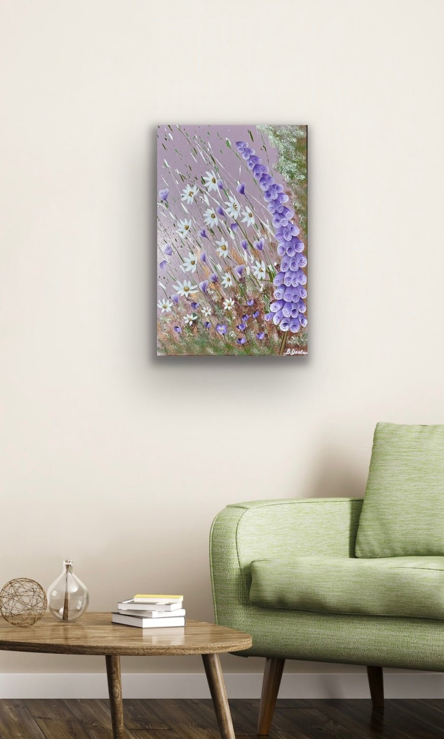 Original painting 40cm x 60cm x 1.5cm - painted in acrylic on a slimline canvas. This painting is inspired by the foxgloves and ox-eye daisies abundant in my area throughout the summer.